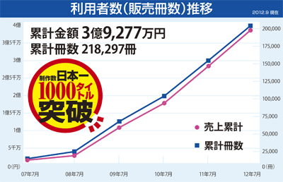 でじじはオーディオブック制作・販売において国内100社以上の有名出版社、レコードレーベルと提携し、1,000タイトル(日本一の制作数)以上の制作実績があります。全国から朗読家を恒常的に募集し、延べ3,500人以上の応募者(2012年8月末現在)から、選りすぐりの朗読家を発掘し、月間1〜5タイトルを出版し続けています。