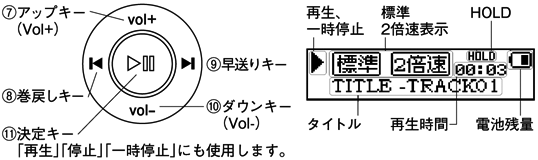 電源を入れて再生速度を選択後、「(11)決定キー」を押すと、再生を開始します。