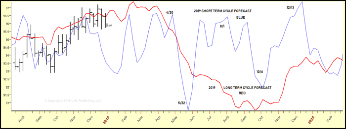 ドルインデックス先物の2019年のフォーキャストです。