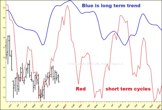 トレーダー2号のように、アメリカン航空のように、これから起こるであろうことを、非常に明確に、そして確実にイメージすることができる。赤線のサイクル予測を短期的なスイングに使用し、青線の長期的なトレンドをナビゲートとして使用することができる。トレーダー1号が常に検索し、記事を読み、他人のアドバイスに耳を傾け、すべてを理解しようとする一方で、トレーダー2号は手元にロードマップがある。